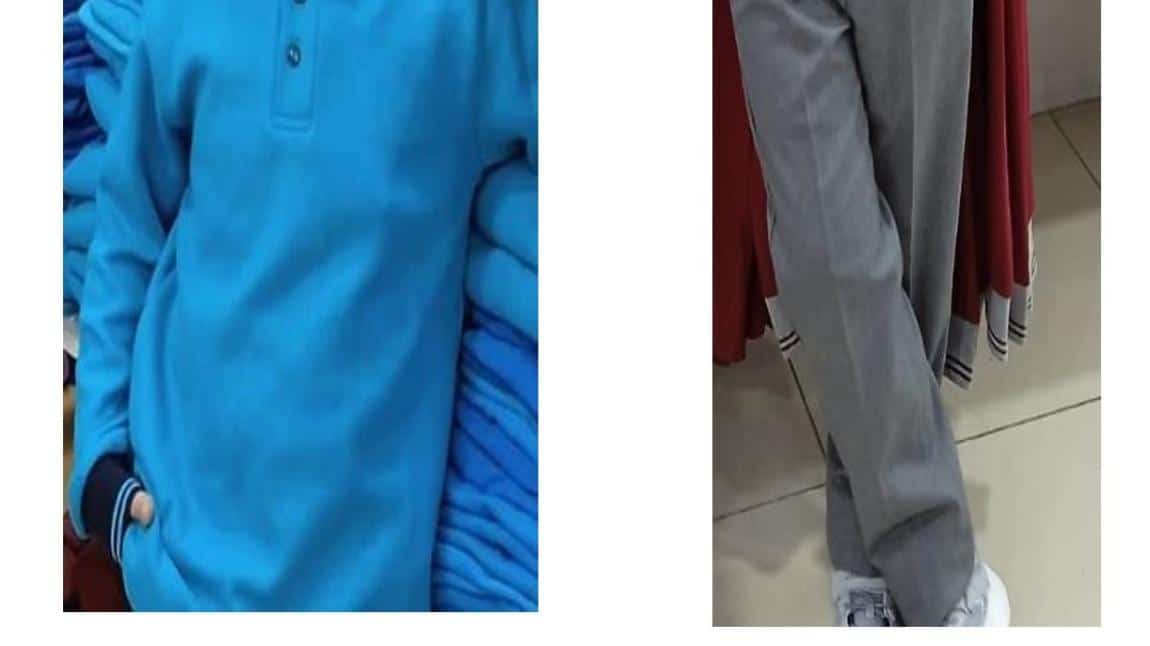 Okul kıyafetimiz olarak görselde görüldüğü üzere mavi üst ve gri pantolon belirlenmiştir.